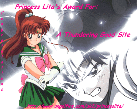 The following awards were given to me by other Sailor Moon sites. I am always very gracious to receive such beautiful rewards, and my thanks to the webmasters/mistresses.