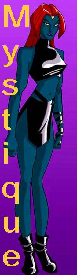 Name: Eric Magnus Lensher Code Name Magneto Age: unknown Power: Magnetism The Facts: Living through one disaster {holocaust}, Magneto believes it's his turn to decide who lives or dies. He believes normal people and mutants cannot live together and that evolution has made it clear that the only ones fit to survive are mutants. Right under Xavier's nose, though not ignored, Magneto is forming a Brotherhood of Mutants, therefore the sole founder. These young mutants are then either taught or encouraged to believe that the dream Xavier is following is the wrong idea and that believing themselves to be a superior species is the correct way to think. So far, he has quite an array...four members with such diverse powers and personalities. Being as he is supposed to be considered very powerful and frightening, or at least mysterious, his character is often clouded by shadows. After season one, he is presumed dead {until the end of the first episode of the second season} until evidence points to his survival. Name: Raven Darkholme Code Name Mystique Age: unknown Power: shape-shifter The Facts: Where she came from for sure is uncertain. But, the certain thing is, she is the principal of Bayville High where the mutants, good and bad are attending. And she works as a recruiter for Magneto and second in command. Mystique has a special interest in Rogue, finding her powers to be useful to the Brotherhood. Spoiler, except to devout X-Men fans, Mystique is Nightcrawler's birth mother. Can't you see the resemblance? Whether she knows Kurt is her at first glance or not, she has made no attempt to be motherly to him, at least not much. But really, how can you give birth to someone like Kurt and not recognize him in battle years later? She has no real feelings for her team. She merely picks off the useful mutants and hoards them away for Magneto. Though it doesn't always seem like it, the BoM is quite respectful of Mystique. UPDATE: Mystique was considered gone after The Cauldron. However the Brotherhood, except for Lance, believes she will come back to them. In a way, they were right. Mystique returned, genetically enhanced, but not to the Brotherhood. She is a loner at the moment. She has taken on the shifted form of Risty Wyle, Rogue's best friend and is observing from the sidelines and enjoying the closeness she has with Rogue in this false purple-haired identity. And let me tell you, she has one mean look now. Name: Todd Tolansky Code Name Toad Age: 14-15? Power: prehensile tongue reaching up to at least six feet, superior leg muscles used for leaping, ability to spit goop from his mouth, and the ability to stick to walls. The Facts: The exact history on Toad is unknown, as of yet. It is unknown whether he has parents in his life or not. This character has gone under the most change for this show. And a lot of important historical facts for the original Toad seemed to have been left out in this kid's profile. Toad is cowardly and though able to sneak about on his own, he prefers the company of his strong and powerful co-horts. Toad lacks confidence in himself and therefore depends on others to use as a crutch. He is also considered the campus reject and idiot. Toad seems to be abused by anyone and everyone, even if he has done nothing to deserve the negative attention. Perhaps that lack of care affects his ability to become dependant and maintain his intelligence, which he has displayed here and there that he has. The campus pest, he does, however, tend to leap about and annoy the X-Men on campus of Bayville high. An efficient spy and natural snoop, he is often successful at digging up helpful info. Unlike the other members of the Brotherhood, Toad, who was the first member of the teen team, was not easily persuaded, though he does obviously dislike people and lacks a social life. He was sort of frightened into the group, and though seemingly useless with his lack of knowledge in battle skills, he is kept around as the "toady" of the group. For more on Toad, visit the fan page here at Toad Hall. He is definately my favorite villain. Name: Pietro Maximoff Code Name Quicksilver Age: unknown Power: super speed The Facts: Long time rival with Evan Daniels, Pietro finally took advantage of his powers and decided to strike out on his "old buddy." Pietro is quite intelligent and very competitive, possessing an ego bigger than Texas. He is a very neat young man, dressing with a better taste than his co-horts, and of course maintaining the slimmest figure. Pietro, unlike his co-horts has a great advantage in the Brotherhood....his daddy owns it. Magneto recruited his son when he was defeated by his rival with the help of Cyclops and Jean. And since then, though perhaps not the group leader, he is certainly well-respected, if the group knows what's good for them. Pietro certainly lives up to his full-of-adrenaline lifestyle. He speaks very fast, especially when angry or excited. And he is the first to step up to a challenge, being adventurous, pompus, egotistical and athletic. As hard as it seems to believe, Pietro enjoys his encounters with Evan. Evan may not have mutual feelings, but Pietro knows Evan is always up to challenge him, even when he knows his old rival can't beat him. It's definately a love-hate relationship. His role as possible leader is ripped out from under him in the second season, having no connections any longer. This leaves Lance in charge for most of the decisions. For more info on Quicksilver, pop in at Quicksilver's Pit-Stop Name: Fred Dukes Code Name Blob Age: ??? Power: Can make himself an immoveable mass. The Facts: Blob is no ordinary fat kid in school. He is the Immoveable! He is one of the least intelligent members of the Brotherhood. Even though that fact, he is still a valued member of the team. His abilities are very useful and have saved the lives of his teammates here and there. He doesn't seem to mind the brunt of the burden and the team tends to treat him with, what he feel