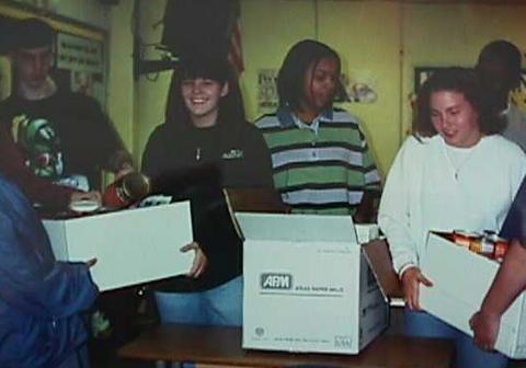 Also circa 1998: The FBLA clan gather canned goods for some kind of something or other. Check out my cans, baby!