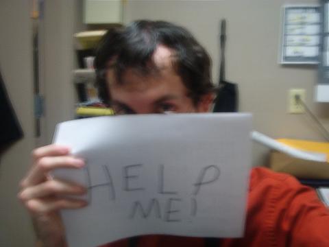 This shot is also current. Here I am, sitting in the lovely BAM office with my lovely BAM apron on, in a desperate cry for help. I have a lot of those.