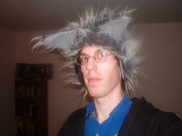 This is another of those crazy hats. This, a classic copy of a wolf's head, is worth over a grand. I had bad hair but had the urge to take a picture, mainly because someone requested a picture of me freshly shaven. There ya go.