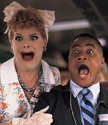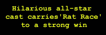 by Andy Moseley - reprinted with permission from the March 25, 2002, edition of The George-Anne Only in "Rat Race" can Cuba Gooding, Jr., the guy who played Mr. Bean, and a cast of Lucy wannabes come together and be so funny. Gooding leads an all-star cast including "Mr. Bean" Rowan Atkinson, John Cleese, Whoopi Goldberg, Jon Lovitz, and Seth Green. Cleese portrays Donald P. Sinclair, a multi-millionaire Las Vegas casino owner. Bored from just watching locals gamble their savings away, Sinclair decides to give a select group of fellow millionaires a bigger contest. He gives a group of random casino-goers a chance to race for a big cash reward. Meanwhile, the millionaires sit back and watch, betting on which of the unknowing racers will make it to the prize first. The racers choose various ways and techniques to travel cross-country and find the prize. At one point, Lovitz and his family drive Hitler's car. Gooding stands in as a bus driver going to an "I Love Lucy" convention. Goldberg and her daughter meet up with a crazed woman selling squirrels. Atkinson meets up with "Seinfeld" alumni Wayne Knight and they travel via ambulance. That is just a small sample of the ways the cast battle it out to find the money. In some of the funniest parts of the movie, shots are shown of Cleese and his fellow millionaires passing the time by doing other human wagers. For the most part, the cast really fits in with the movie. Cleese and his shiny white teeth are perfect as a cheesy millionaire. Lovitz is brilliant as the father of an average family which just happens to have no idea, outside of himself, that the reason they are travelling across the nation is because they are part of a giant race. After this movie, it is truly a wonder why there are not more movies starring Lovitz. He is still as funny as he was in the "Saturday Night Live" days. While not good enough to win him another Academy Award, Gooding plays his part well. As a football referee who blew a coin toss on national television, he gets into loads of trouble on his way to the money. |