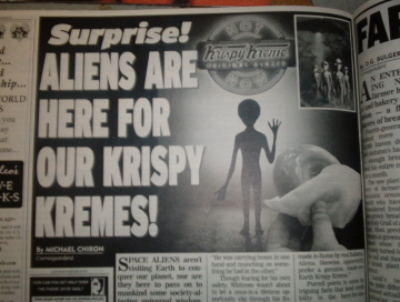 Here is the "Aliens Here For Krispy Kremes" story I took a picture of a few days ago.