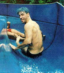 confident as was everyone else about his chances. But,oh no,our Olympic-bound hero did something not-so smart. While he was being fluffed by his Olympic whores,he had 5 cases of Heineken,7 bottles of Smirnoff,4 bottles of Jager and a diet coke. Just as he lined up with the other competitors,he felt the urge to pee!! Everyone was looking at him strangely as he was crossing his legs and jumping up and down frantically. He thought to himself,"Vell,as long as I can hold it until I get in ze Vater,novone vill notice."When the announcer gave the signal,the swimmers dived into the water. Till let it out while he was swimming. He was at a head start and looked to be the winner. But something strange happened. Till noticed that all the swimmers were gone! And the water turned red. Still confused,Till looked around in bewilderment. The audience had their hands over their mouths in complete shock. Then the announcer broke the silence,"Looks like ve haf ourselfs a pisser!" Everyone laughed so loud for the longest time. "Oh my Gott!", Till thought,"Zos bastards put something in ze vater to make it turn colors ven I pissed. Zis vas a trap against me!! A conspiracy!!" Needless to say,Till was disqualified, forever destroying his chances of going to the Olympics. For his act of inconsideration, he was also banned from professional swimming anywhere in the world forever. Some Hungarian eneded up being the winner. Realizing he had nothing to lose, Till broke both of the winner's legs out of jealousy. That silly Tilly!! What a pisser!!