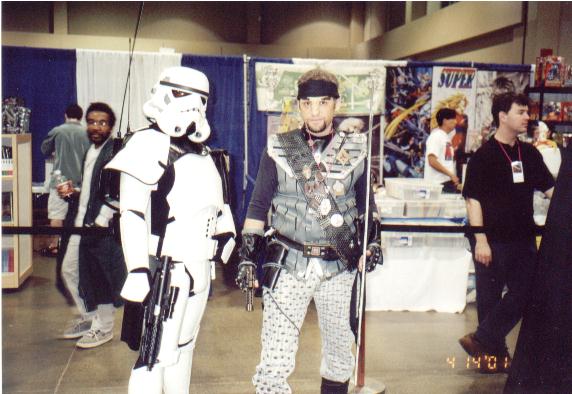 | DUQWI AND 501ST TROOPER IN COSTUME CONTEST, SPARRING WITH SECURITY, GAMERS PLAYING NOBLE ARMADA | |||