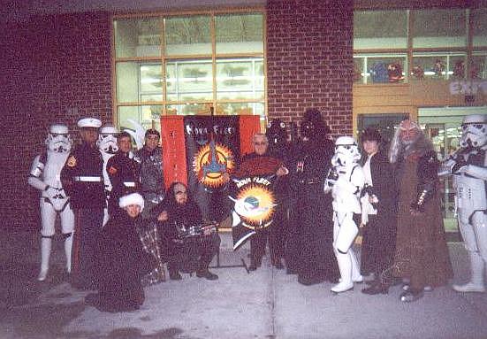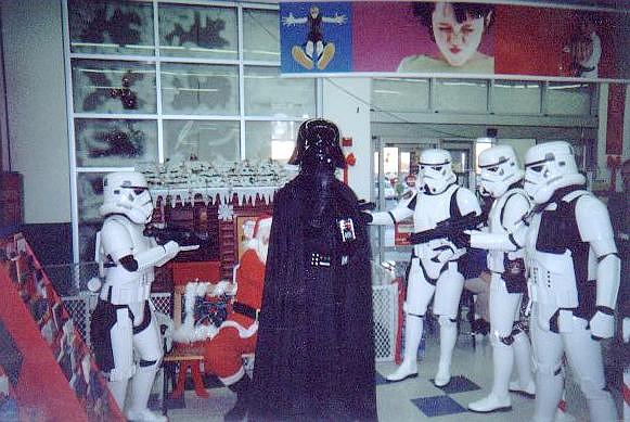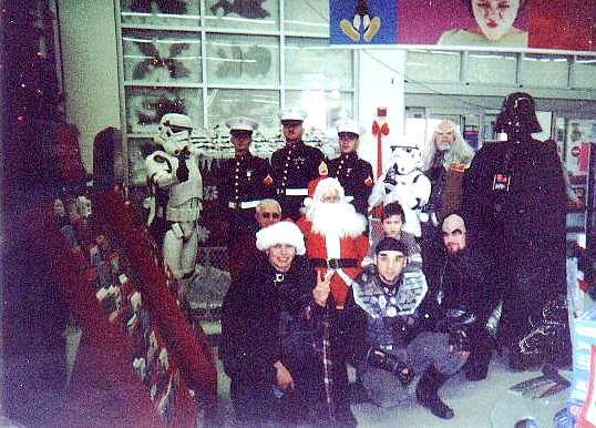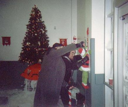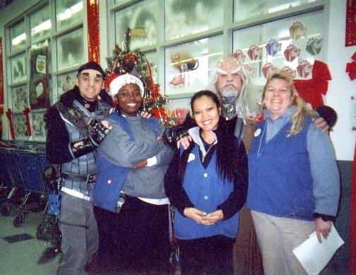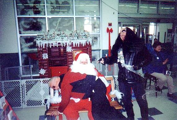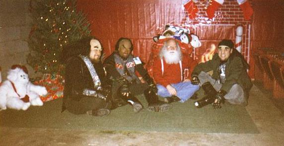 | THE SANTA SPANKING OF THE LEADERS - DARTH (BOB B.), WARLORD MARTOK (STEVE M.), FEDDIE KEN H., AND AS KLINGON CAROL MARREL SHOWS, THOUGHT COL KEVIN BEHIND DOOR NUMBER 1 | |