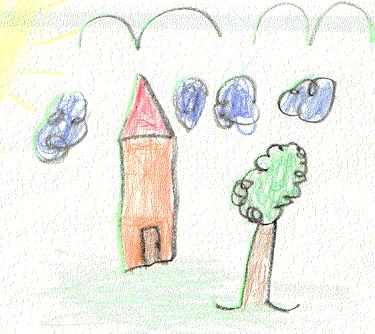 These two drawings were drawn especially for my webpage by my six year old cousin Ryan who is in 5K. Ryan loves drwaing trees and houses. Can you tell?