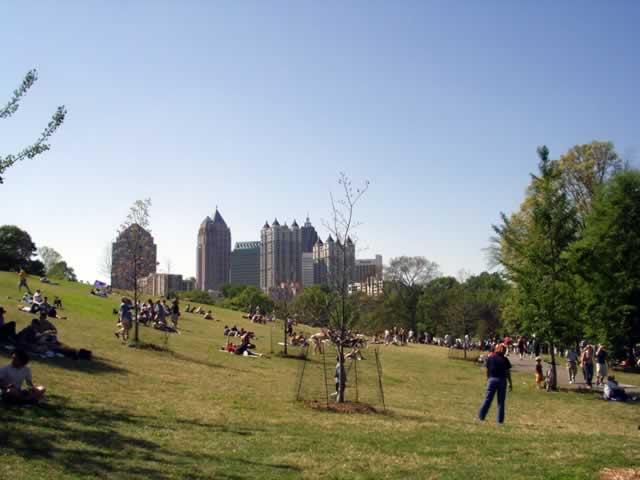 Dogwood Festival Atlantans and visitors spread out, picnic, relax and tan in Piedmont Park during the Dogwood Festival. |