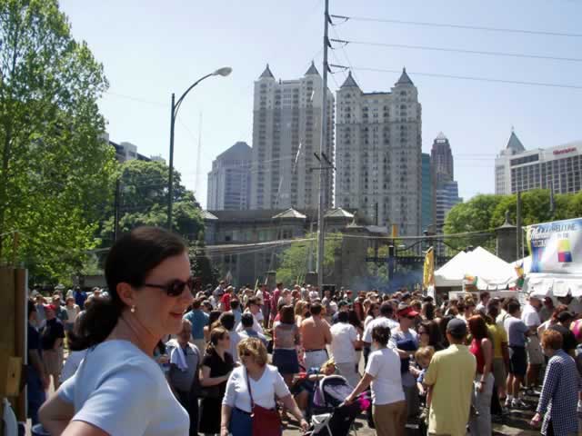 April 2003: Dogwood Festival My sister Lani, her fiance Dale, their neighbor Marlon and I attended the 2003 Dogwood Festival in Piedmont Park, Atlanta, on April 13, 2003. I knew it was a big event, but I had no idea how crowded it would be. I felt a bit claustrophobic in the park, and it's a big park. We spent an hour or so perusing the booths (what we could see of them, that is), and then we moved on to grab a bite to eat. It was a fun time! |