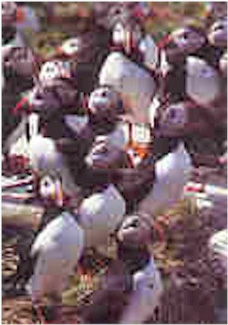 This large colony of puffins gathers to breed in the same place every spring.