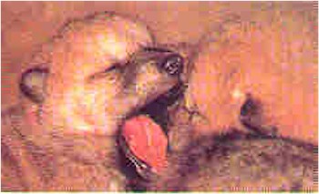 These newborn cubs nestle in the den to keep warm while their mother searches for food.