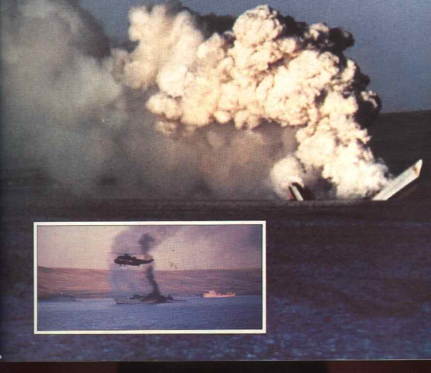 "A la mañana siguiente, 1o único que emergía de la “Antílope” era la proa mirando hacia el cielo y una densa columna de humo negro que podía divisarse desde muchas millas."