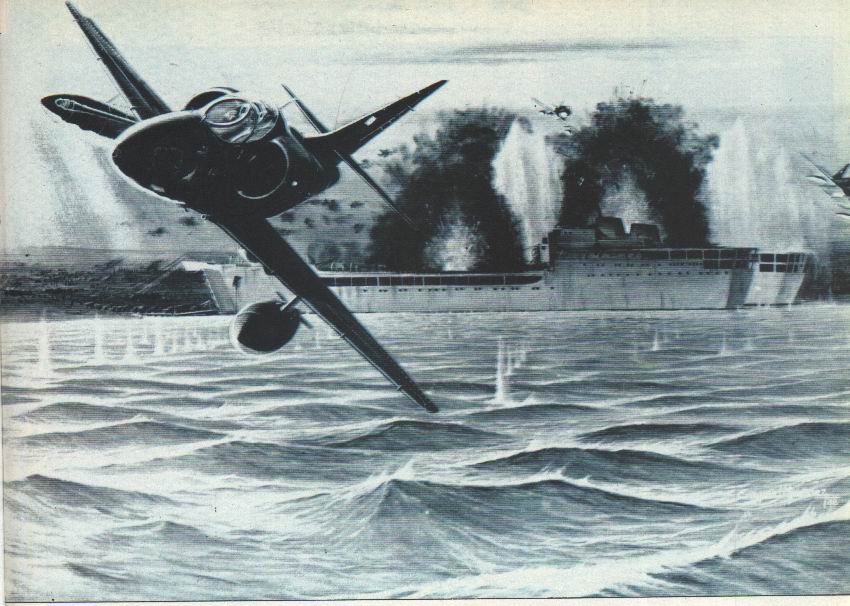 Se encuentran súbitamente con dos helicópteros ingleses, pero el jefe de la escuadrilla ordena seguir adelante, con la idea de atacarlos al retornar de la misión, si todavía estaban allí.