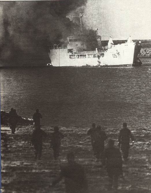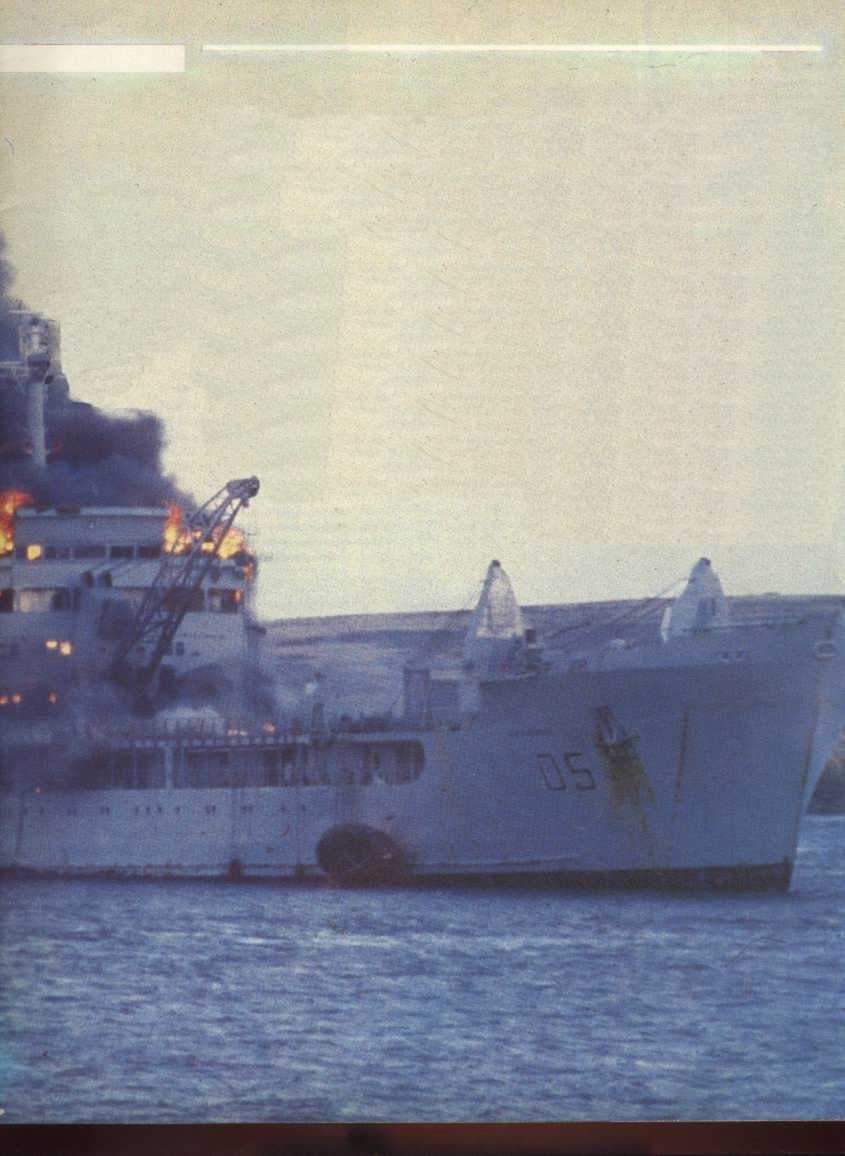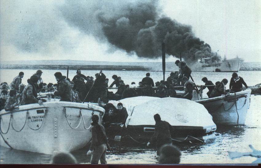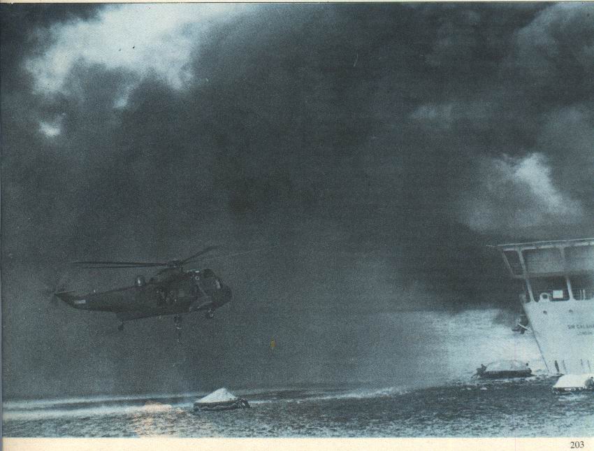 dantesca, ya que el combustible derramado por el "Sir Galahad'' se incendió y