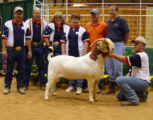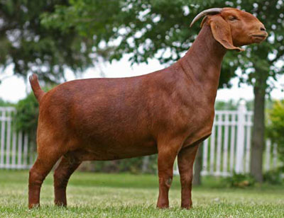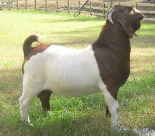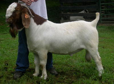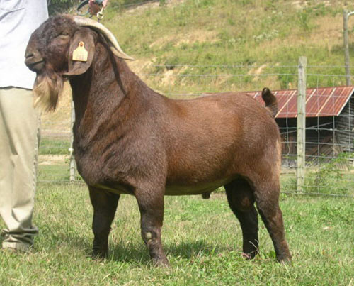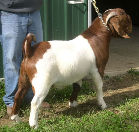 Massive, square-made young buck sired by multi champion Red Tail Kat. He's heavy boned and heavy muscled with great spring of rib. His pedigree