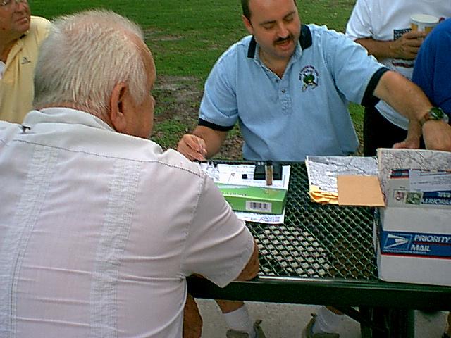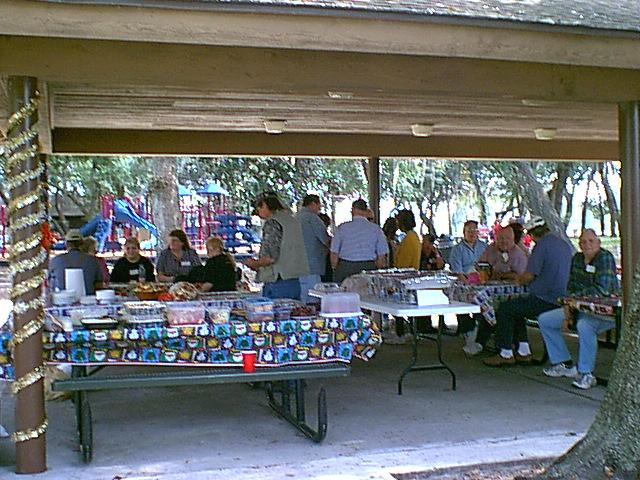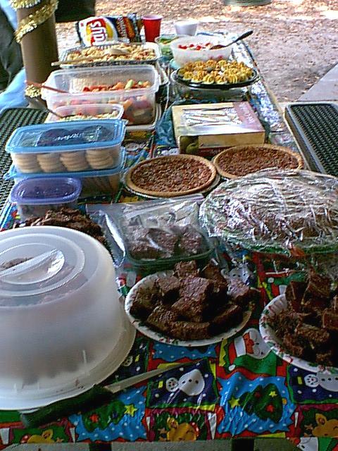 The club provided beverages, chicken tenders (Hot and Regular), sweet and sour meatballs, sauerkraut with sausages, and some fried chicken. There was Potato Salad, Cole Slaw, Calico Beans (those were a real taste treat),Deviled Eggs, Rolls, Ambrosia, Pasta Salad, Fruit tray, Brownies, Apple pie, Cookies and an Angelfood Cake with cherries that was to die for. No one left hungry, that was for sure.