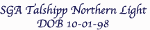 Just when you think you have it all together in one cat, fate plays games with you. We had great hopes for Light. She did wonderfully in the shows - despite the great left hook, even a regional win. Kittens were not in her future. She was retired from the breeding program due to birthing problems and enjoys the home life with a few shows thrown in. She is the progeny of Ch Legerdemaine Indigo of Talshipp and Talshipp Esmeralda. |