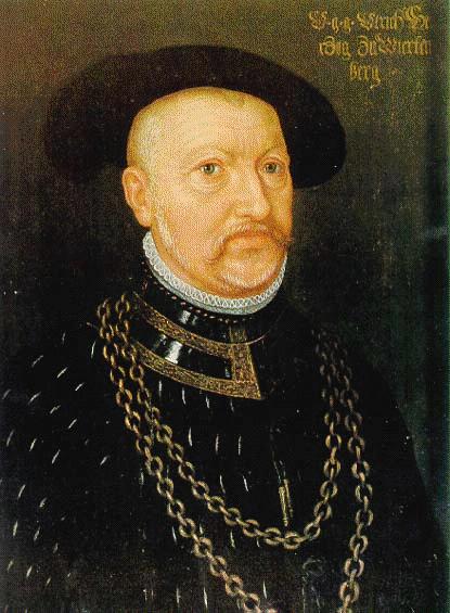 The Duke in later years. Upon regaining control of his duchy, Ulrich looked to Sabine to introduce fashion and encourage the education of women in the Court of Wuerttemberg. By allowing this, both he and Sabine paved the way for German ladies to be sought after in the finer courts of Europe. To get back to the main page, hit the Back button on your browser or go to The Archduchess. |