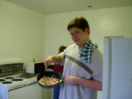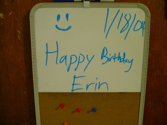 For Erin’s birthday we decided to make spaghetti with tomato sauce, and chicken with sautéed onions and peppers. There was salad, bread, Italian dressing, Coke, 7Up, butter, plates, balloons, shenanigans, Gigli (shudder) and the S.S. Corona made a stop by one its way to Fiji…among other things. So, here’s to Erin’s 20th!