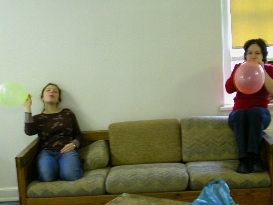 Emily and Amy blowing up wonderful balloons that we later tormented Claire with. AHAHA!