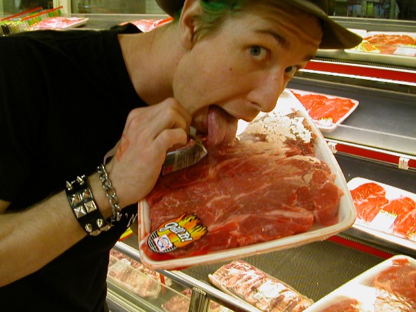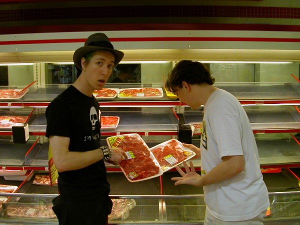 Peter the singer from Retard-o-Bot went to Giant with us. Comparing steak prices...