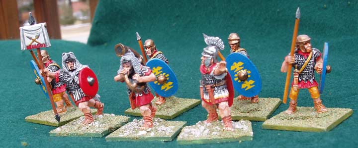 Auxiliary Infantry (Old Glory) the EIR list has some of the finest light infantry stats. Used as skirmishers and armed with throwing spears you can easily & quickly clear the field of enemy skirmishers. These figures looked horrible when I first oogled them. I had set aside for a while, then decided needed more Auxiliaries and painted up a few. That is how I learned that figures look much better with paint on them.