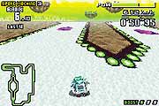 Gameplay wise, you race lightning fast machines across several circuits against other racers. The tracks can contain hazards such as spikes, lava, and other things. But it also contains speed boosts, a repair area, and other things to help you on your quest for 1st place. Each machine has it's own unique performance. Some have a faster boost, other have weaker boosts but last longer. And there are plenty of ships to earn. Graphicly, the GBA version looks very similar to the SNES version, as you can see to the right. The way tracks appear is also diffrent. New effects have been added to make the illusion of high speeds even greater. And some things have been removed so you wouldn't become destracted. While playing a fast paced game like this on a smaller screen can be distracting, you most likely will ajust very quick. Some courses are dark and can be hard to see, but most are bright enough to see ok. The one new feature that is really neat is the 4 player multi player mode. Up to four people can race together using the link cable, and only one game if you wish. It uses the download feature where you only need a single game cartridge to play. Just give the GBA about 20 seconds to Download the needed information to play that track and your off! But there is only one ship and few courses to choose from, so it's better if everyone has there own game. F-Zero: Maximum Velocity is one racing game that you wouldn't regret taking a look at, but it doesn't last for to long. F-Zero : Maximum Velocity is currently available. MY RATING: 8.1 By : Alex Zman |