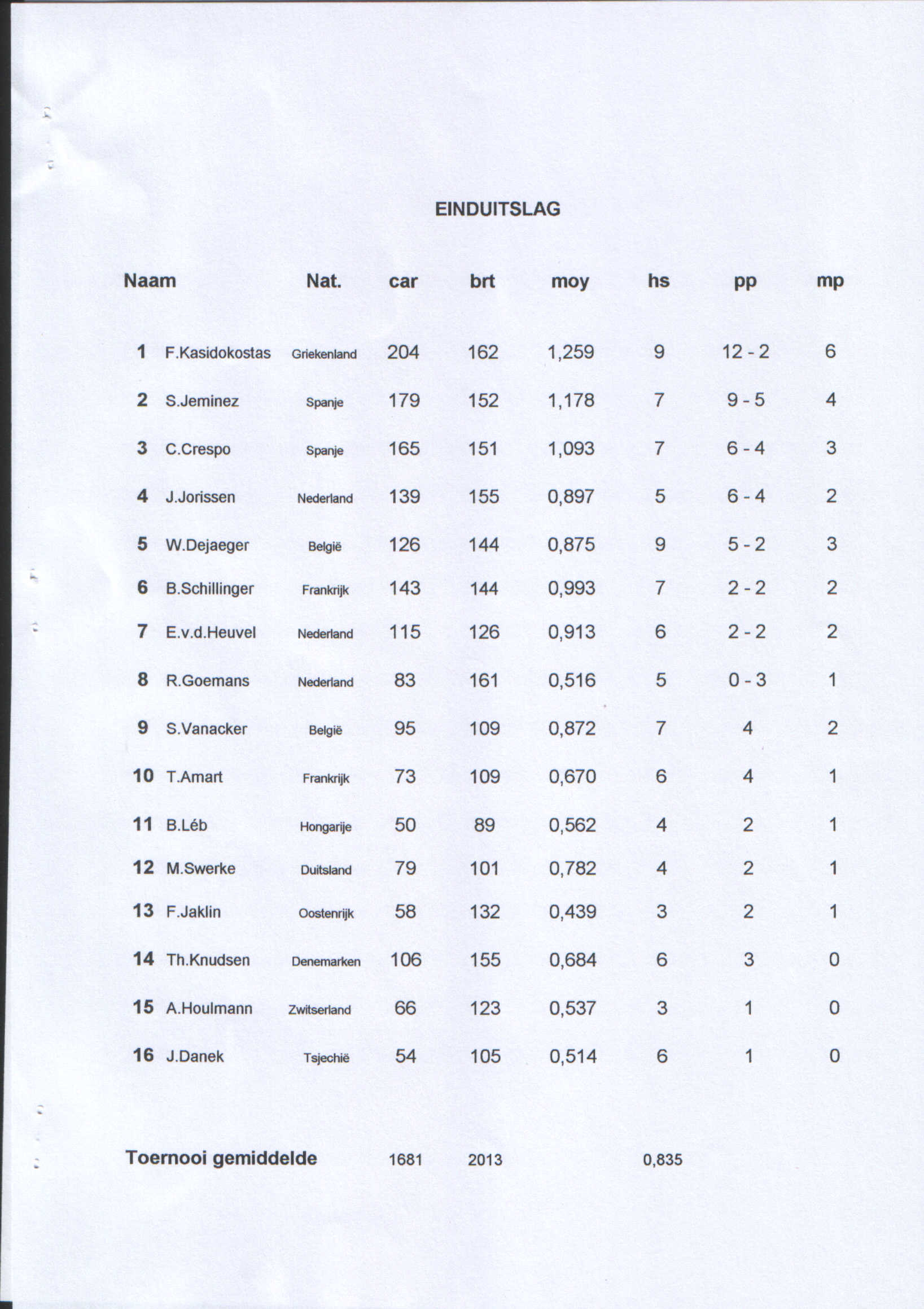 biljarters van Den Haag 3 banden klein is weer afgelopen, daarom het