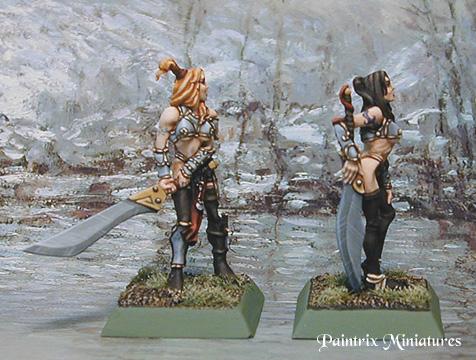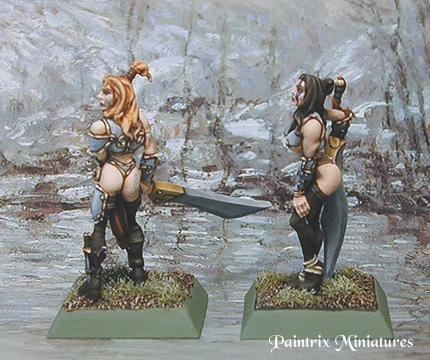 | 04/04/2001 These pictures are of 2 Confrontation miniatures "Keltoi Fianna" painted by Jennifer Haley I commissioned one of these for my collection, Jennifer sent me an extra one because it took her awhile to get my order to me. (did you know you could commission work by her? You don't have to bid on everything on Ebay) sadly, she has tendonitis and has to limit her commissions. Here is the link to her web page: http://www.wegotgame.net/jen/main.html Click here to see her Ebay sellers page if your interested in what she is currently auctioning