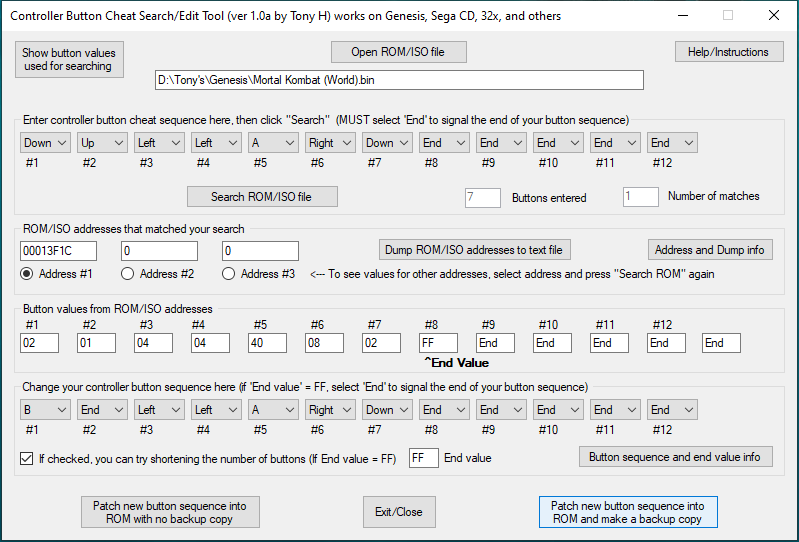 Controller Button Cheat Search/Edit Tool (Genesis/Sega CD/32x)
