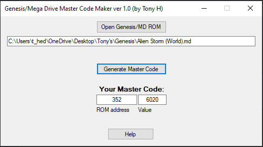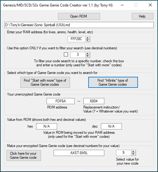 Game Genie Code Creator (Genesis/MD/SCD/32x)