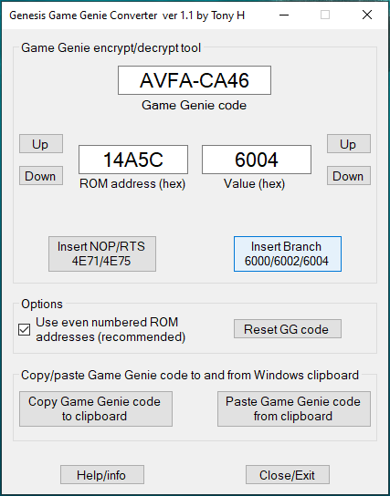 Game Genie Code Porting Tool (Genesis/MD/32x)