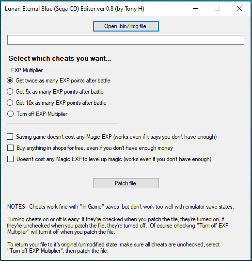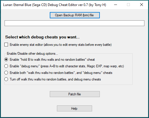 Download Lunar: Eternal Blue (Sega CD) Debug Cheat Editor ver 0.7