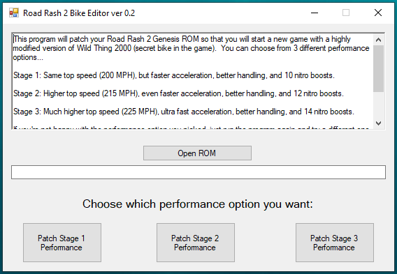 Road Rash 2 ROM editor (version 1.2) (Genesis/MD)