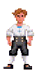 Guybrush is our hero in this game, a wannabe priate who sails to Melee Island to study the craft. Through a series of events I'm too lazy to type out, he sails off in search of his true love, ready to fight the Ghost Pirate LeChuck for her love.