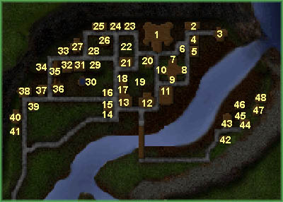 (Necessary to drink from to make Alvar available for Townportal)31 Expert Perception, Lev 4, 500 Gold 32 Master Disarm Trap, Lev 7, 2500 Gold 33 Expert Mind Magic, Lev 4, 1000 Gold 34 Expert Shield, Lev 4, 1000 Gold 35 Grand Master Dark Elf, Lev 10, 8000 Gold 36 Expert Dark Elf, Lev 4, 1000 Gold 37 Master Chain, Lev 7, 3000 Gold 38 Grand Master Bow, Lev 10, 8000 Gold 39 Expert Dagger, Lev 4, 1000 Gold 40 Master Spear, Lev 7, 5000 Gold 41 Elemental Guild - Upper Elemental Spells 42 Potion of Pure Luck for delivering the ingredients 43 Make Weapon 44 Buys Wasp Stingers for 500 Gold 45 Well - ? 46 Quest: Kill all Ogres in this Region
