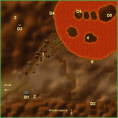 D1 Troll Tomb [Dungeon] D2 Cyplops Larder [Dungeon] D3 Ilsingore's Cave [Dungeon] D4 Chain of Fire [Dungeon] D5 Entrance to Plane of Fire [Dungeon] 1 Village of Rust [Map] 2 Fire Resistance Pedestal 3 Test (random) - 100 of the attribute required 4 Obelisk # 3 5 Rock with treasure chest, contains random artifact Expert