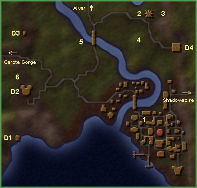 D1 Smuggler's Cove [Dungeon] D2 Chapel of Eep [Dungeon] D3 Dire Wolf Den [Dungeon] D4 Lord Brinne's Tomb [Dungeon] 1 Ravenshore City [Map] 2 Oracle 3 Obelisk # 7 4 Earth Resistance Pedestal 5 Chest in tree - contains random Artifact6 Contest (random) - 50 of the attribute required Expert