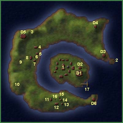 D1 Pirate Stronghold [Dungeon] D2 Small Sub Pen - Submarine Station [Dungeon] D3 Tower [Dungeon] D4 Old Loeb's Cave [Dungeon] D5 Abandoned Pirate Keep [Dungeon] D6 Tower [Dungeon] 1 Harecksburg [Map] 2 Obelisk #2 3 Cannon - north thereof the Pirate Fleet 4 Pauls Estate: Info 5 Marmon Domicile: Info 6 Well - ? 7 Quest: Find Dread Pirate Stanley's Treasure 8 Jawblower Manor: Info 9 Stoneskin Pedestal 10 Challenge (random) - 200 of the attribute required 11 Ferne Lair: Info 12 Terrence's Home: Info 13 Nalani's Home: Info 14 Pawel's Place: Buy Dried Sunfish - Sell Pirate Amulets 15 Mercer Domicile: Info 16 Well - ? 17 Ship: We Ravenshore Expert