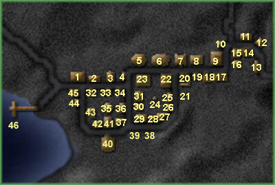 Skills: Dark Magic22 Master Dark Magic, Lev 7, 5000 Gold 23 The Bood Bank - Bank 24 Well - ? 25 Quest: Return Puzzle Box 26 Master Perception, Lev 7, 2500 Gold 27 Buy Pirate Amulets - Sell Heartwood of Jadame 28 Buy Silver Dust of The Sea - Sell Ground Wyvern Horn 29 Infaustus - NPC Vampire Lev 30