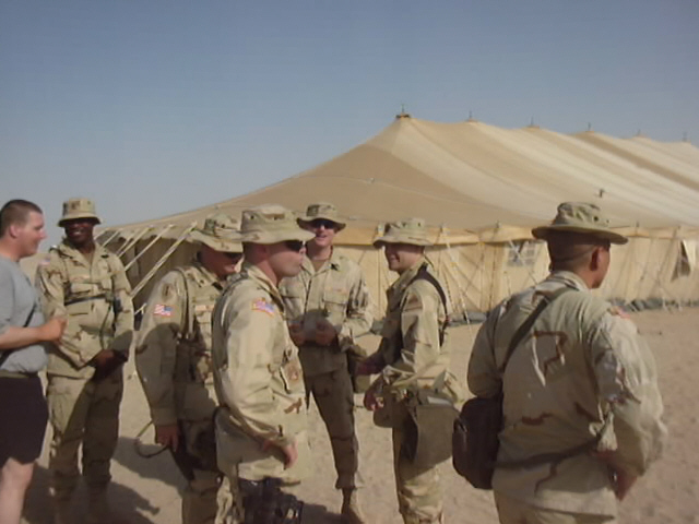 For those of you who have not figured it out yet, the word "kabal" means camp. We have several of these kabals in Kuwait (can't disclose the actual number due to security reasons). Four of the kabals were named to commemorate the tragedies of September 11, 2001: New York, New Jersey, Virginia, and Pennsylvania. There are several pads in each kabal, and several tents on each pad. The medical platoon resides in tents two, three and four on pad 1 in the New York Kabal. Our Battalion Aid Station is tent one on the same pad. On this web page, you'll get a glimpse of what life is like in the kabal. | ![]() | ||||||||