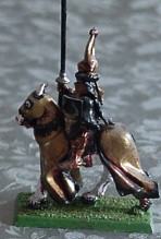 This is the very first model I ever painted. Looking back, there's a lot of things I'd do differently. If you see my more recent cavalry models, that'll probably show. One nice thing is that, although it's not apparent, I added some gold to the green I used for the base. I'd say that makes for a good, faint reflection coming from the base. Something else that I find funny is that the horse has no tail. It broke off after I glued it together, and I never bothered to put it back on. |
