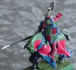 This is one Knight where I thought I'd do something a little different. I mixed Chainmail into both Green and Red. I like the way it showed up against the same colors used on the horse. Again, I went with the 'active turning' pose. |