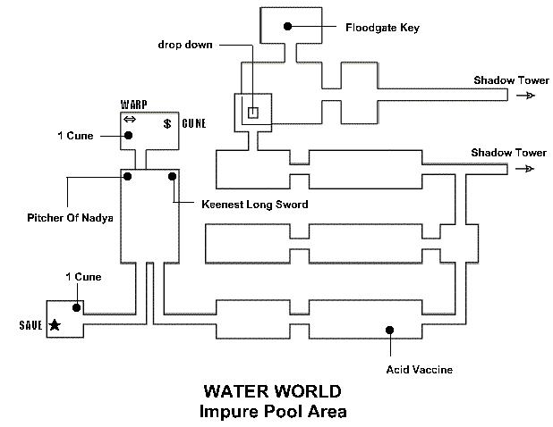 This walkthrough will proceed through the Tower in the order of levels as they appear on the Options portion of the Menu screen. But you can do what you want. Of course, the only real problem you will encounter is that of the levels that are 1-way, like the Impure Pool Area you just left. Since you cannot climb back up the well that you dropped down, how do you get back?