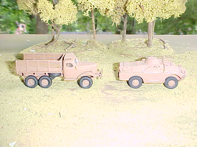Airfix's Dingo backed up by JB model's Salidin and Saracen