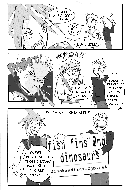 ,fins,fins@dangergirl.com Re: WOW! a sneak doujinshi preview!,Wednesday 17-Jan-2001 15:41:41,,Woah that is amazing! Fins you are an excellent artist! Thanks for doing that I think I'll put that up in the rambles! You don't mind do you? Of course not ^_^. ,Cloud612,cloud612@tifa.zzn.com Re: Re: WOW! a sneak doujinshi preview!,Wednesday 17-Jan-2001 17:29:23,,That's brilllllllllll!!!! I can't wait to see the finished thing! *gives thumbs up to fins* Your drawings....just....ROCK!!!,Caroltrue,caroltrue@hotmail.com Re: Re: Re: WOW! a sneak doujinshi preview!,Wednesday 17-Jan-2001 20:03:20,,Hey great job on the pics!they're awesome wish i did that good lol buh bye