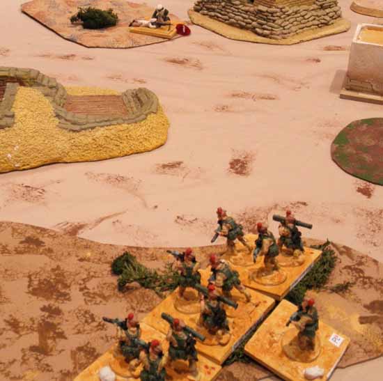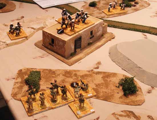 Insurgent forces "somwhere in the sand-box" were disputing the ownership of a patch of mixed terrain with some of Her Majesty's forces. The exact country (probably Iraqistan) was not identified.