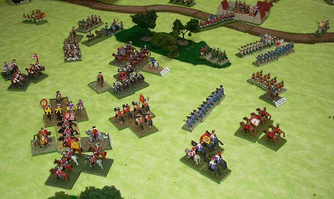 A bit later in the game, showing the same area. More units can be seen, many of which have lost a stand, but are still in action.