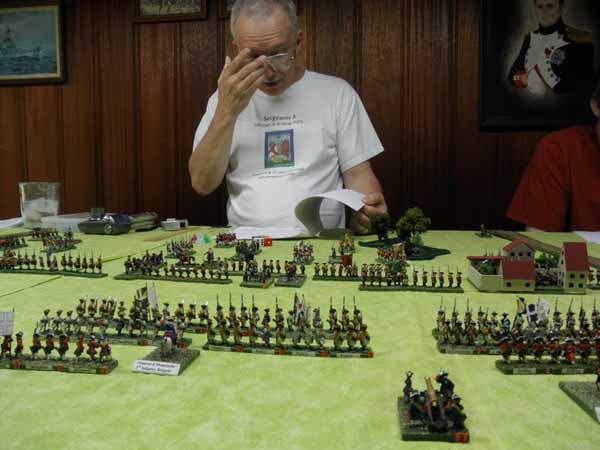 Jim Pitts takes a quick look at the rules for clarification. This is early in the game. The French have not yet Assaulted Huntley.