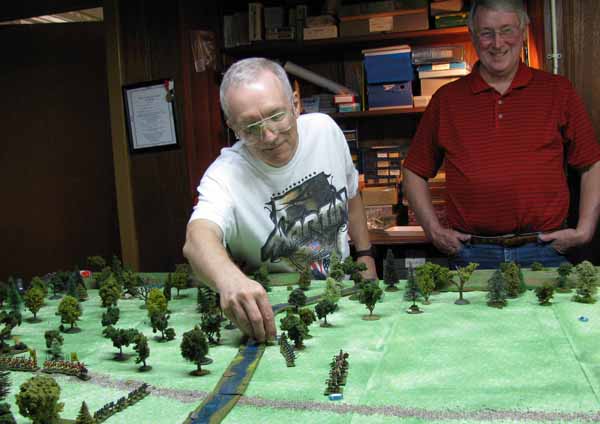 Jim Pitts prepares to photograph the British forces while Charles Canfield makes an important point about the rules.